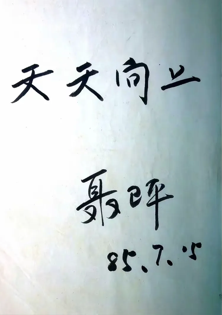 图为1985年7月,聂卫平为杨志存所创办的湖南省第一个少儿围棋班——长沙市东区少儿围棋班的题词:天天向上。