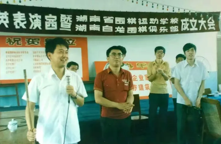 1985年7月14日,能容纳400多人的礼堂爆满,隆重的成立大会结束后,主席台变成裁判台,裁判台前静卧着一块淡兰色的木质棋盘(现在很少有兰色木棋盘了),一副精美的云子耐心静候主人支配。这是一场每方保留10分钟,每手30秒的快棋战。