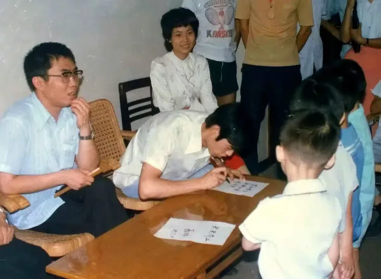 图为1985年7月,聂卫平、马晓春在长沙芙蓉宾馆为长沙市东区少儿围棋班题词。