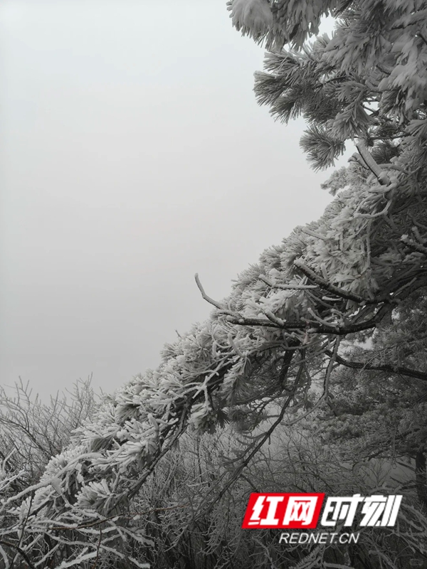 2月16日,南岳衡山景区内出现雾凇景观。(网友供图)