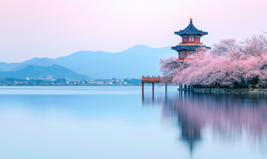 此岸,人面与桃花对坐,俗念在波光里退潮