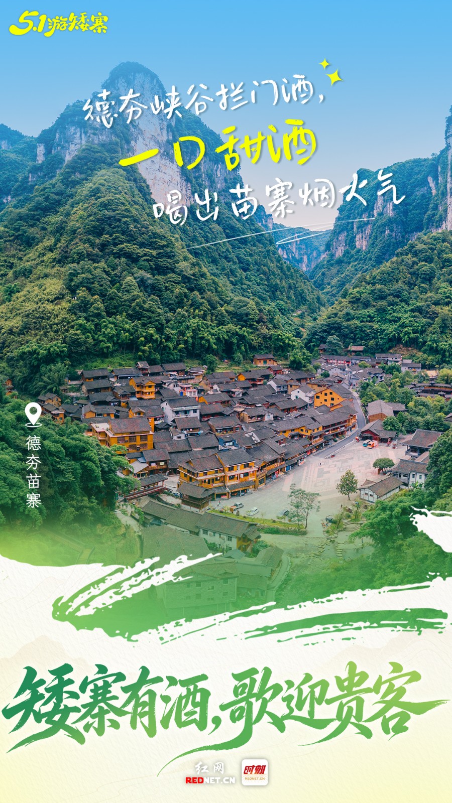 “五一”游矮寨,喝一杯苗寨拦门酒。