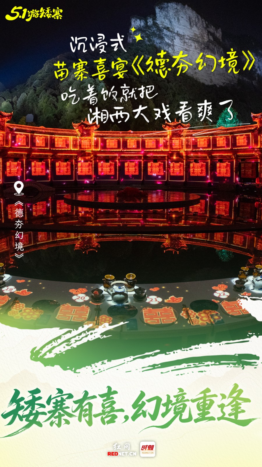 “五一”游矮寨,沉浸式体验苗寨喜宴《德夯幻境》。