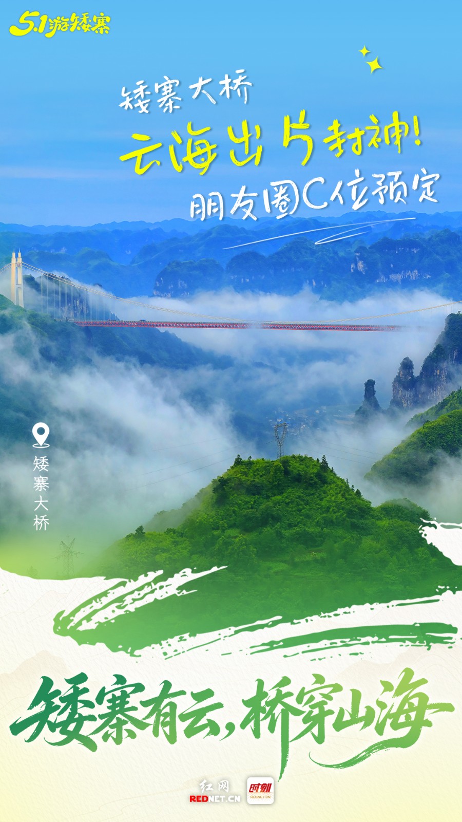 “五一”游矮寨,看矮寨大桥云海。