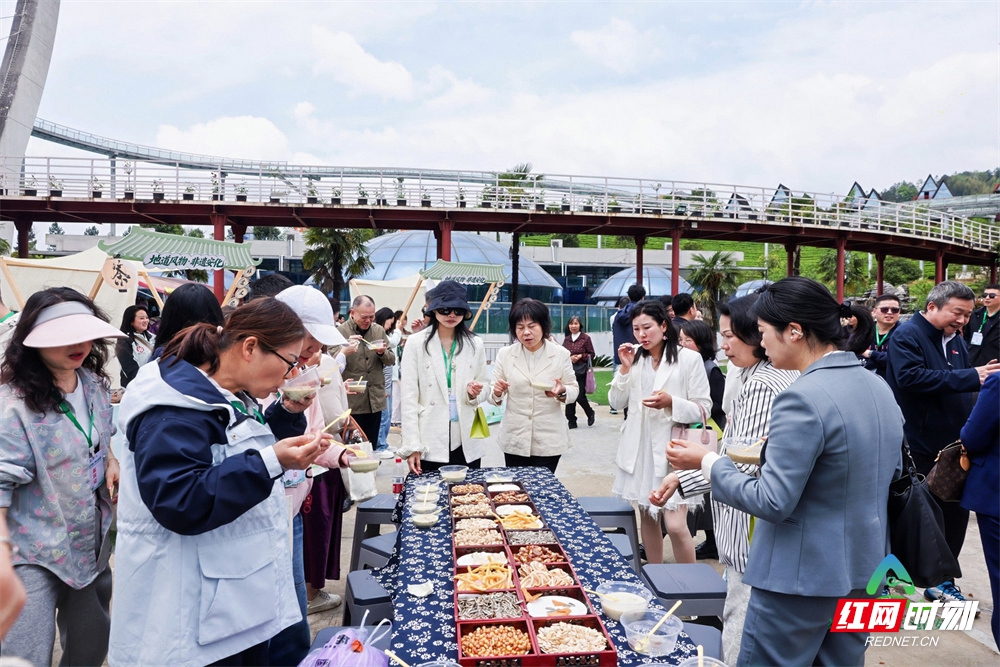 游客品尝安化特色美食。