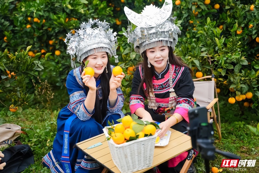 苗族阿妹在直播间卖麻阳冰糖橙。