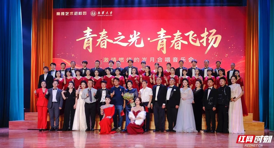 10月16日晚,《青春之光·青春飞扬》——“激情燃烧的岁月”合唱音乐会在南华大学礼堂上演。