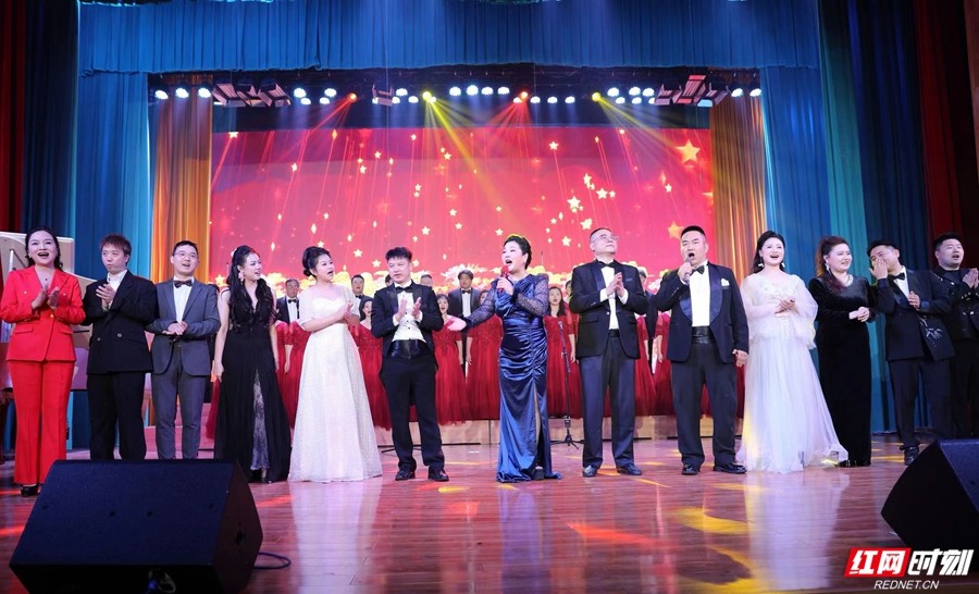 音乐会在全场师生齐声高唱《我和我的祖国》中圆满落幕。熟悉的旋律响起,师生们挥舞手中的国旗,用歌声表达对祖国的热爱与祝福。著名歌唱家、指挥家、一级演员包燕飞,二级演员王耀宏、朱保全、徐玲春及湖南省歌舞剧院合唱团常任指挥雷永鸿、青年演员傅廖苓、黄俊豪、王依依、李孟杰等50多名演职人员共同献上了这场视听盛宴。