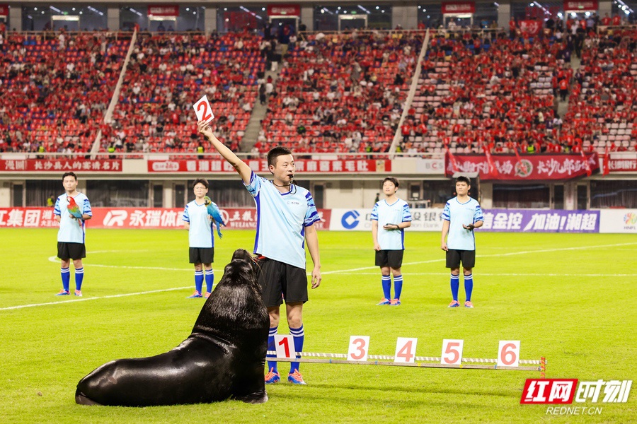 比赛未开始,预言已登场!湘江欢乐海洋公园的明星海狮“洋洋”作为本场“特邀预言官”,在赛前互动环节中,精准“预测”出长沙队将以2-0取胜。这一充满趣味性的环节,不仅点燃了现场气氛,更在赛后成为球迷热议的话题——“洋洋果然是懂球的!”