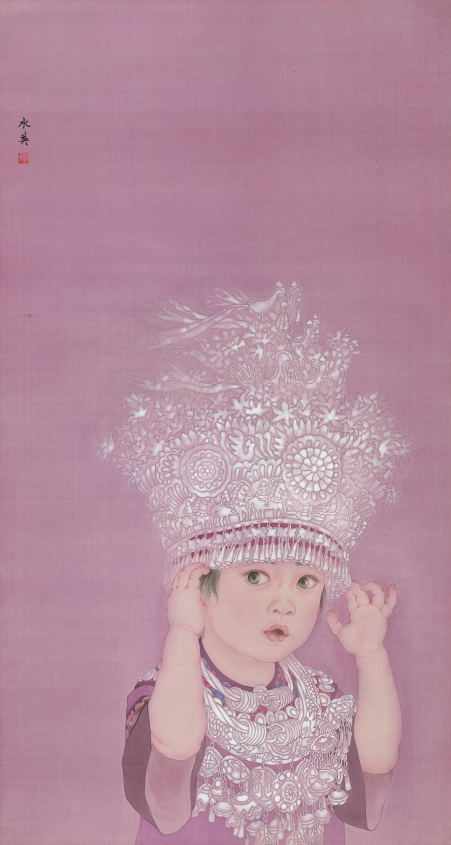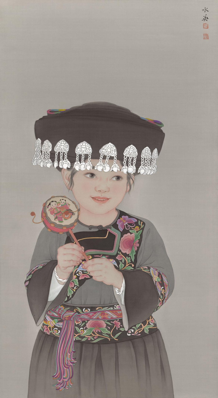 向水英是近年来异军突起的中青年女画家,她以工笔形式刻画少数民族女性人物,作品多次参加省展和全国性展览并获奖,是一位实力派工笔人物画家。她笔下的民族人物,生动活泼,千姿百态。尤其是苗族、土家族女性人物,画出了深厚的生活情态和艺术创意,达到至真至美的艺术效果。