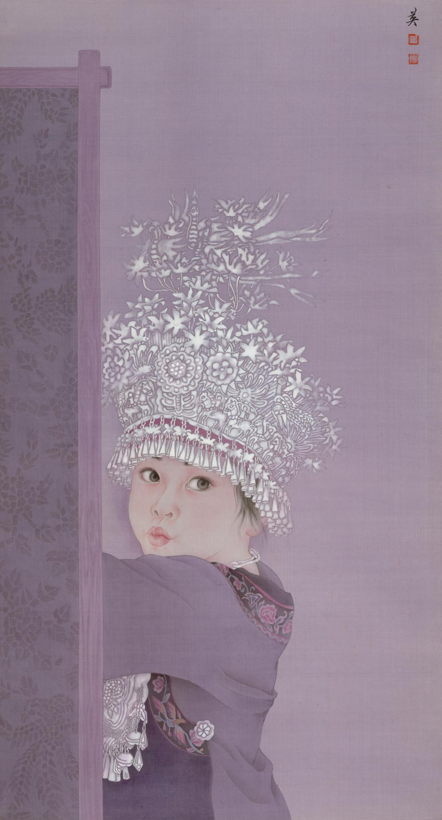 在题材选择上,她基本上立足于湘西本土,立足于湘西的少数民族。作为女性画家,她更多关注身边的女性,通过女性独特的视角,把她们最精彩的瞬间描绘并诠释出来。像作品《弄花香满衣》《阁》《新嫁娘》《新装》等,将湘西山川的秀美,苗家女性的美展示得一览无余,让人产生无限的想象,获得艺术的享受。