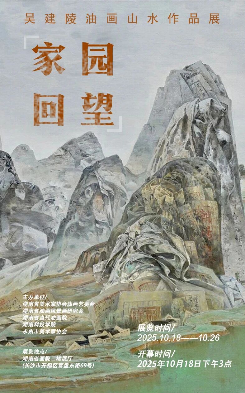 10月18日15:00,“家园回望——吴建陵油画山水作品展”在湖南省画院二楼展厅开幕,省内美术界专家教授名流云集。黄铁山、陈和西、张月明、胡师正、李水成、石纲、唐晓明、罗湘科、肖骥波、林志军、陈秋伟、曹先兵、唐朝晖、杨贵、李辉武、文波、吕杰、肖弋、范迎春、陈翊斌等著名画家、专家学者出席了开幕式。