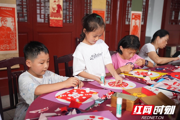 与此同时,在八路军驻湘通讯处旧址大厅内,以“芳草·薪传”为主题的公益课堂正在开展。中国结绳编织技艺代表性传承人陈妙华、长沙剪纸代表性传承人罗晴现场授课。