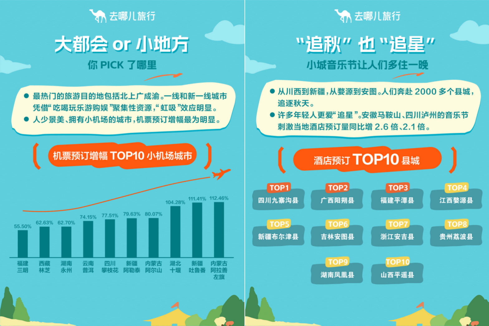安徽马鞍山“葫芦果音乐节”、四川泸州“银河左岸音乐节”带动当地酒店预订量分别增长2.6倍和2.1倍。