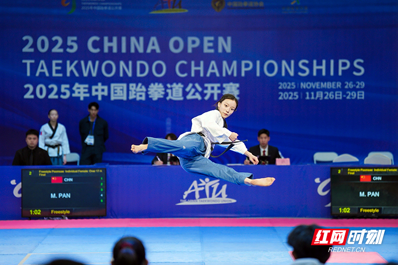 11月26日至29日,2025年中国跆拳道公开赛在湖南贺龙体育馆举行。19岁的怀化妹子潘美静收获1金1铜。一整年都状态不错的她,以3金1银3铜的个人成绩收官2025赛季。