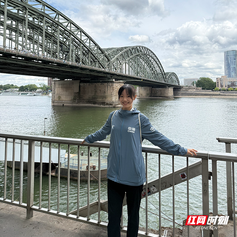 2025年在德国参加大运会期间,潘美静在莱茵河边游玩。供图/潘美静