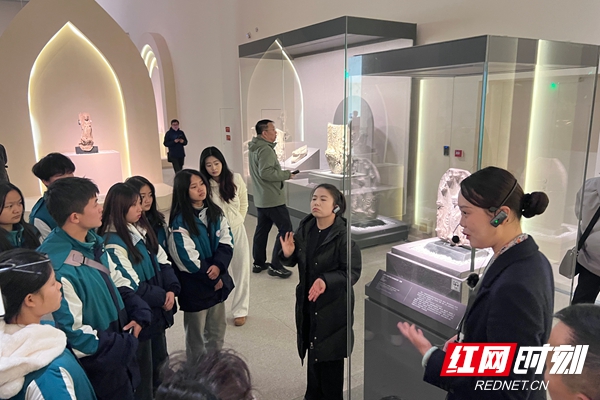 红网时刻新闻12月24日讯(记者 袁思蕾 通讯员 陈虹帆)12月24日,湖南省博物馆的“东方微笑——青州风格佛像艺术”展厅内,一个特别的参观团引起了人们的注意。