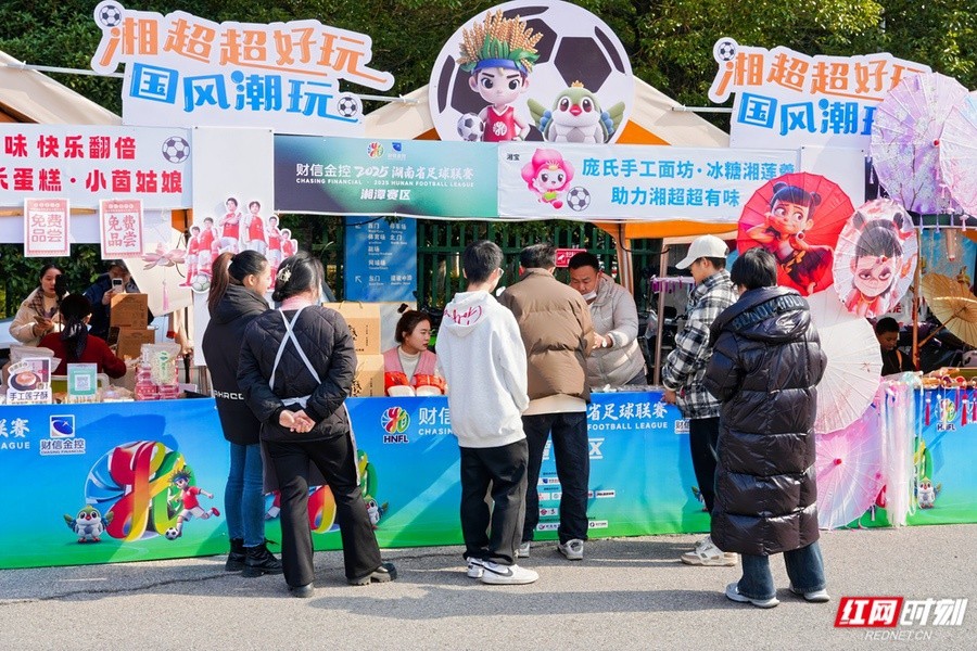 红网时刻新闻12月6日讯(记者 何超)12月6日,湘超常规赛迎来收官之战。当天,湖南省“湘超 超好玩”国风潮玩系列活动在益阳奥林匹克公园与湘潭市体育中心南广场同步火热启动。活动以“湘超燃赛 国潮逐梦”为主题,创新融合足球赛事、国潮文化与地方文旅资源,为市民与球迷带来了沉浸式的文体旅消费新体验。
