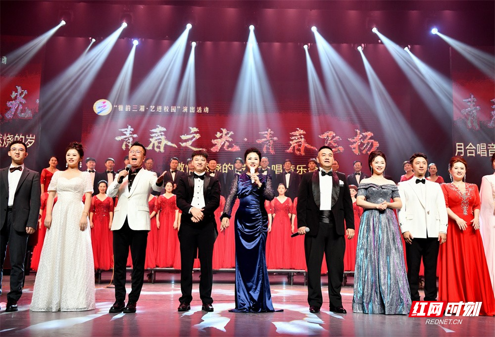 红网时刻新闻10月18日讯(通讯员 李倡平 陈立健)10月17日晚,湖南省歌舞剧院合唱团承办的《青春之光 青春飞扬》音乐会在湖南第一师范学院举行。现场气氛热烈,师生共同回顾激情岁月,抒发时代豪情。